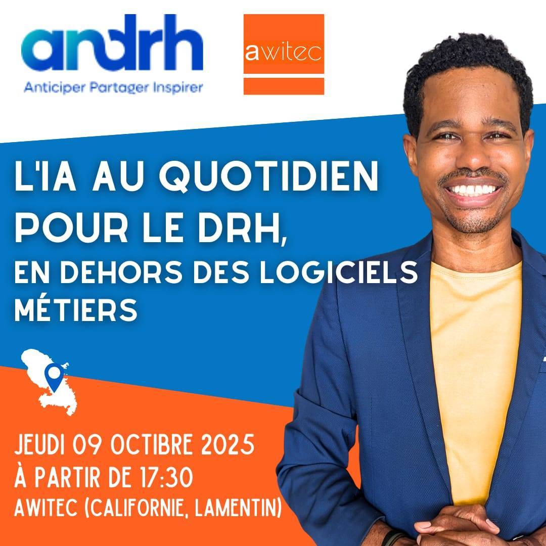 Notre association, l'ANDRH Antilles, rassemble les professionnels des ressources humaines de la Martinique et de la Guadeloupe. Nous avons pour vocation de créer un espace d'échanges pour les RH désireux de partager leurs expériences, de relever leurs défis et de développer leurs compétences, le tout dans une ambiance chaleureuse et bienveillante.